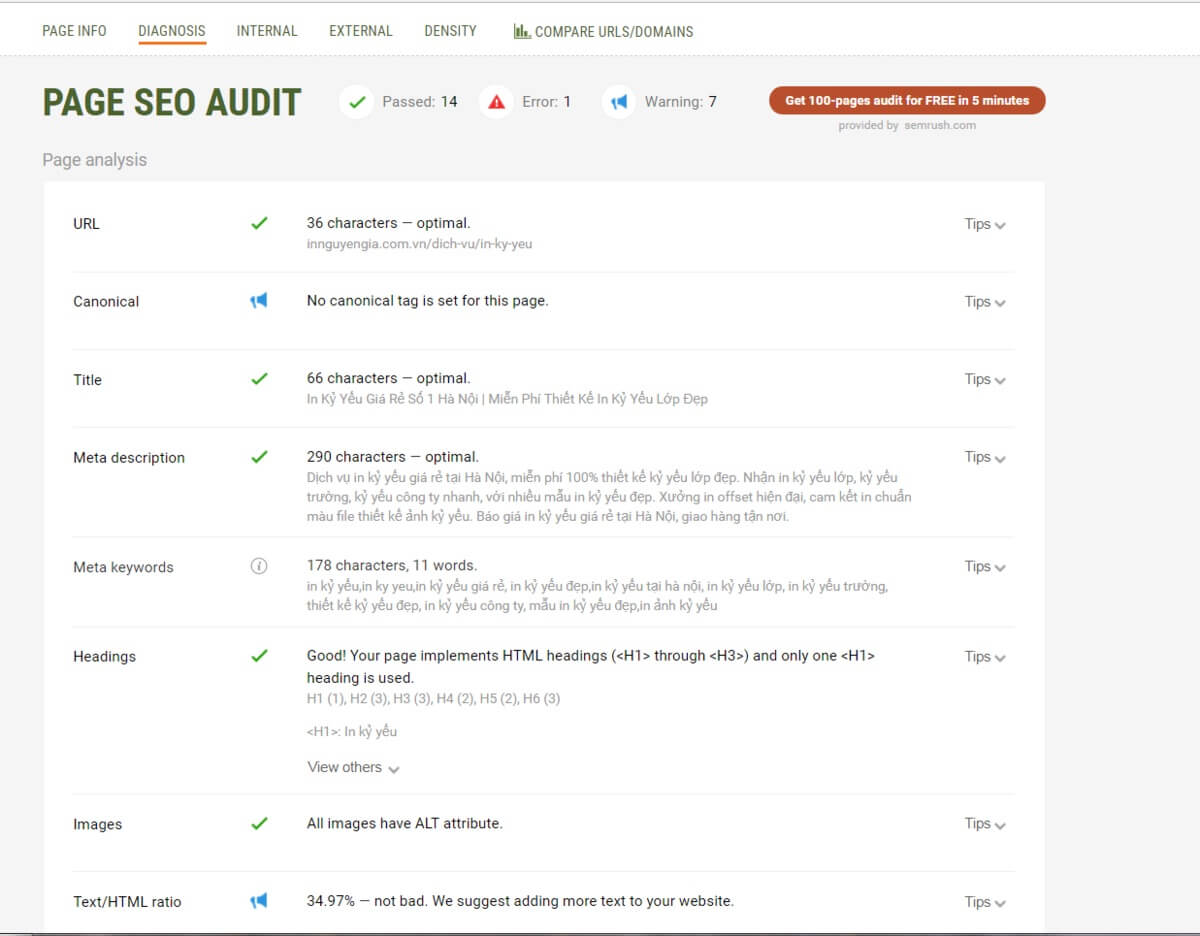 - Kiểm tra lượng liên kết nội bộ và link out (chỉ nên để 11 link out) so sánh với các đối thủ để có thể tối ưu lại